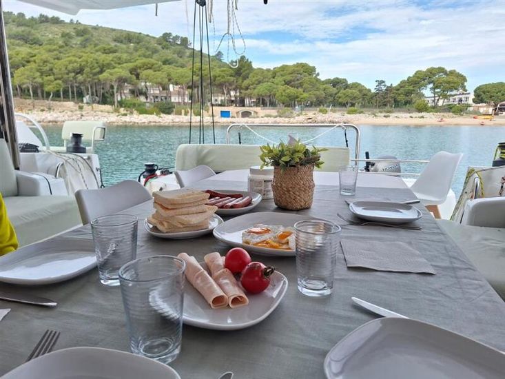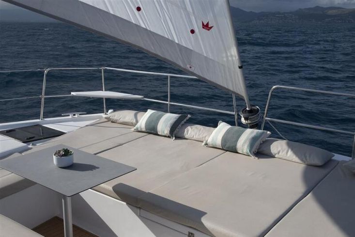 The Bali Catsmart is renowned for delivering exceptional space, comfort and practicality in a compact, easy to handle package. The innovative Bali 'Open Space' concept seamlessly connects cockpit and saloon, creating a bright, sociable living area ideal for family cruising. The solid foredeck, a signature Bali feature, provides safe access forward and an excellent lounging area, further enhanced on this vessel with a table fitted at the bow sundeck.