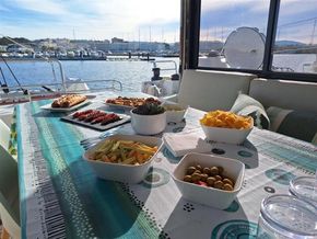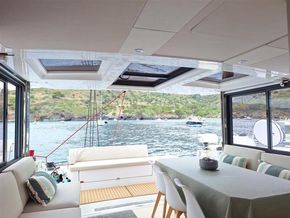 This Bali Catspace offers complete maximisation of space, with a comfortable aft cockpit with dining area which connects seamlessly to the saloon and galley inside, and is covered by a hard top to enable use in all weather.