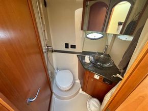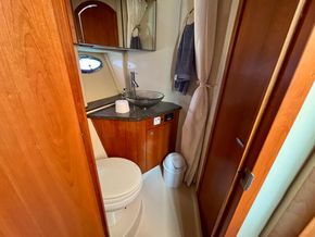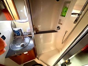 The 447 Sedan offers accommodations for 4 people in 2 large double cabins. The full-beam master stateroom is a standout feature, providing a private retreat complete with a queen-sized berth, abundant storage, and an en-suite bathroom with a separate shower. The forward VIP stateroom is equally impressive, offering a comfortable double berth and access to the shared second bathroom. High-quality fixtures, luxurious fabrics, and thoughtful details in these living spaces underscore the yacht’s commitment to comfort and elegance.