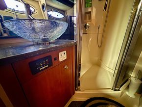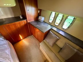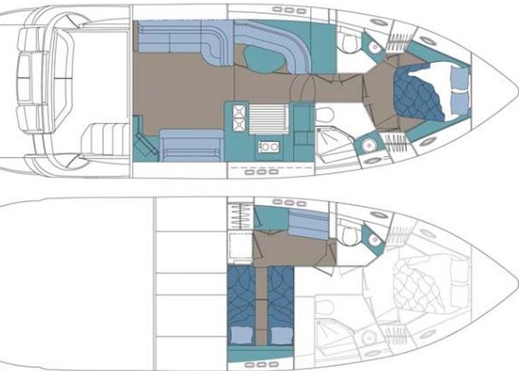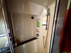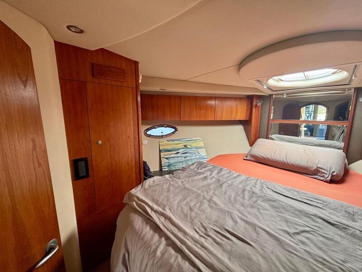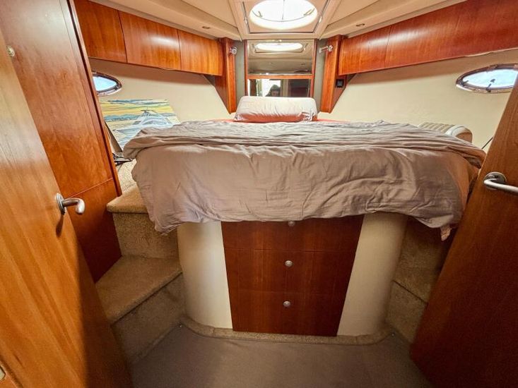 El 447 Sedan ofrece alojamiento para 4 personas en 2 amplias cabinas dobles. La cabina principal, de manga completa, es uno de sus espacios más destacados: un refugio privado con cama tipo queen-size, gran capacidad de almacenamiento y baño en suite con ducha independiente. La cabina VIP de proa es igualmente impresionante, con una cómoda cama doble y acceso al segundo baño compartido. Los acabados de alta calidad, los tejidos lujosos y los detalles cuidadosamente seleccionados en estas áreas de descanso subrayan el compromiso del yate con el confort y la elegancia.