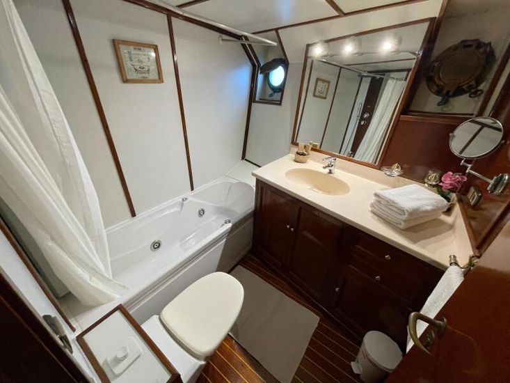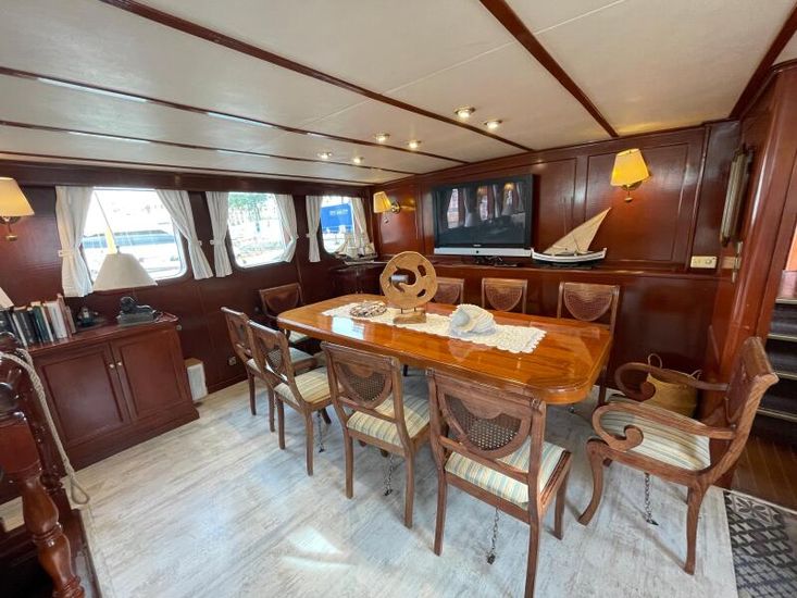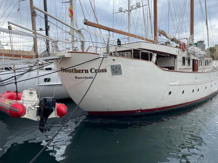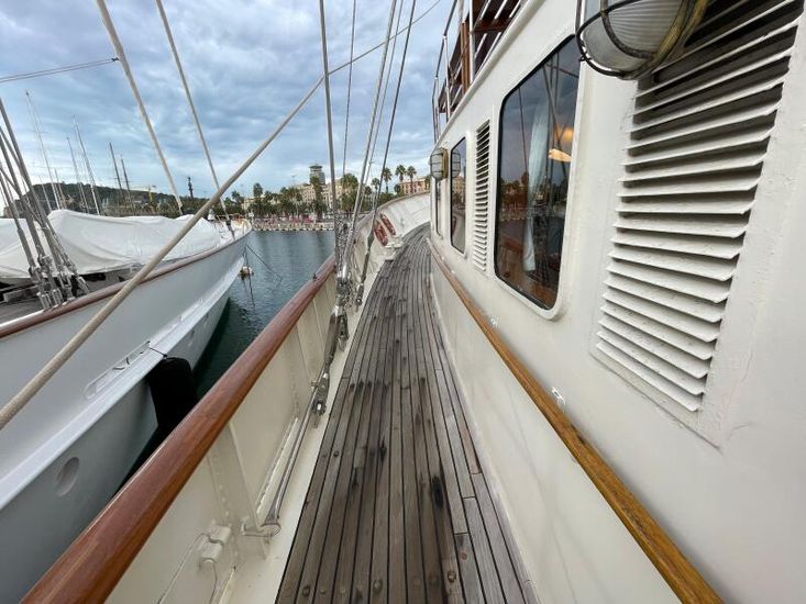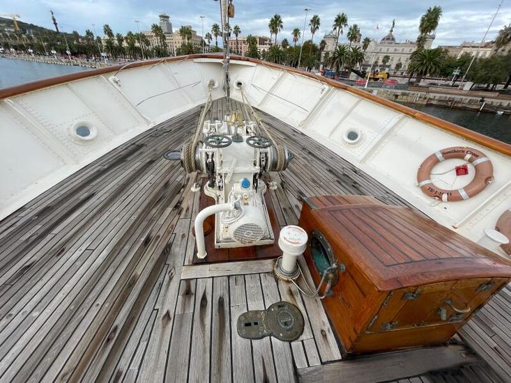 Today, she is based in Barcelona, cruising Spanish waters and the Western Mediterranean. She combines timeless elegance, proven seaworthiness, and historical prestige, making her a truly unique classic yacht. She is nowadays well-equipped and maintained. The bright deck saloon, large bridge, and her ample semi-protected outside dining area are the major features. This yacht offers a rare opportunity to acquire a historically significant, commercially certified classic yacht that combines heritage, operational capability, and proven charter potential.