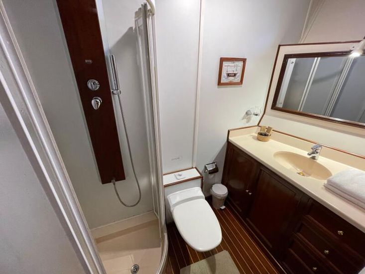 The yacht offers comfortable accommodation for up to 10 guests in six en-suite cabins, comprising:
